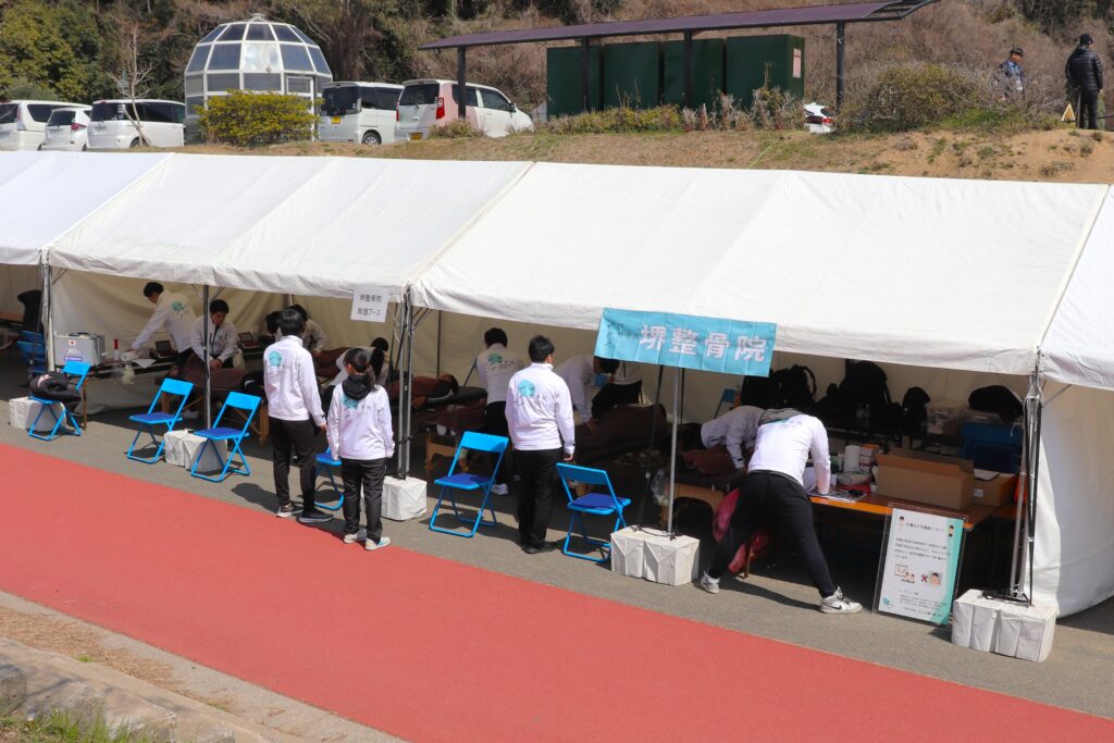 スポーツ大会に救護ブースがあり、国家資格を保持した柔道整復師・鍼灸師がいる事により、選手や監督・保護者の方の安心にも繋がります。